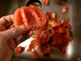 Seeding the skinned tomatoes