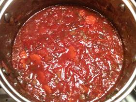 This tomato sauce takes 4 hours to prepare. However, this effort is rewarded by a chunky thick consistency and amazingly rich taste. |