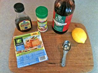 Get in Advance: 1 15 oz package of Nasoya Lite Firm Tofu Have On Hand: 1 tablespoon lemon juice 1 tablespoon cider vinegar 1 teaspoon of sweetener (agave nectar) 1 pinch of garlic powder |