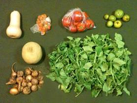 New Zealand Spinach Potatoes Basil Beets Cucumber Squash Lettuce Peaches Tomatoes Sun-gold Cherry Tomatoes |
